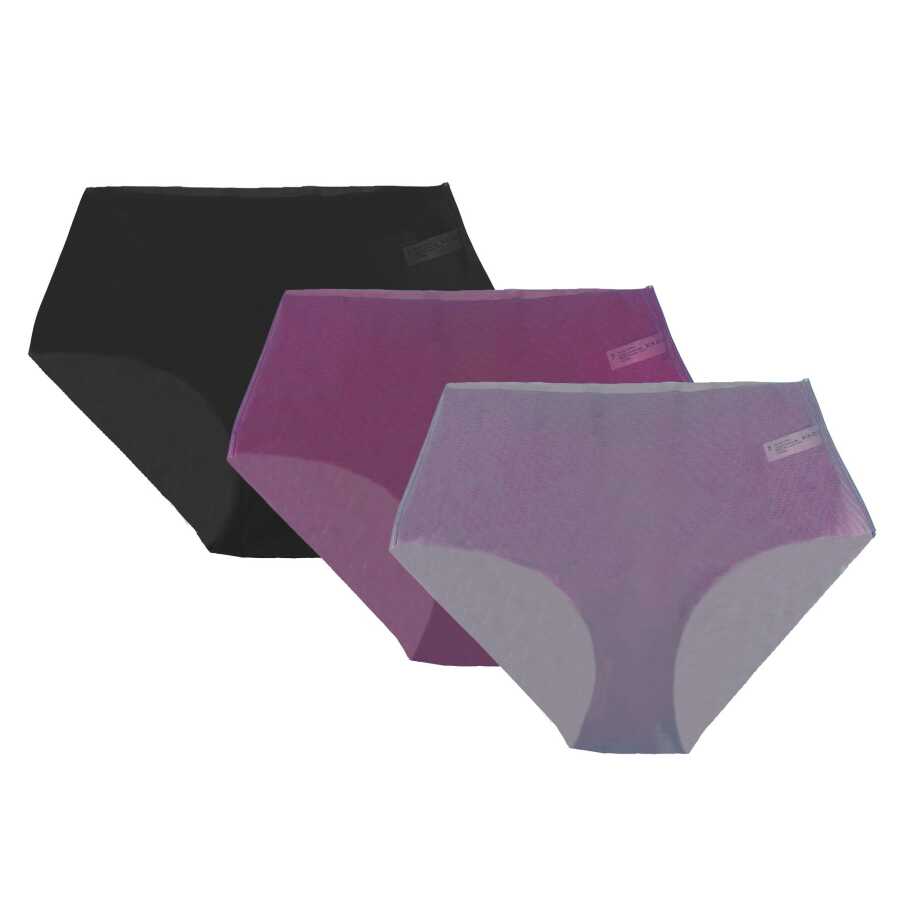 MODEL: UM230139001.VAR1Lazer kesim, yüksek bel, slip tül külot 3'lü paket Siyah, Mor, Lila %91 Microfiber, %9 Elastan