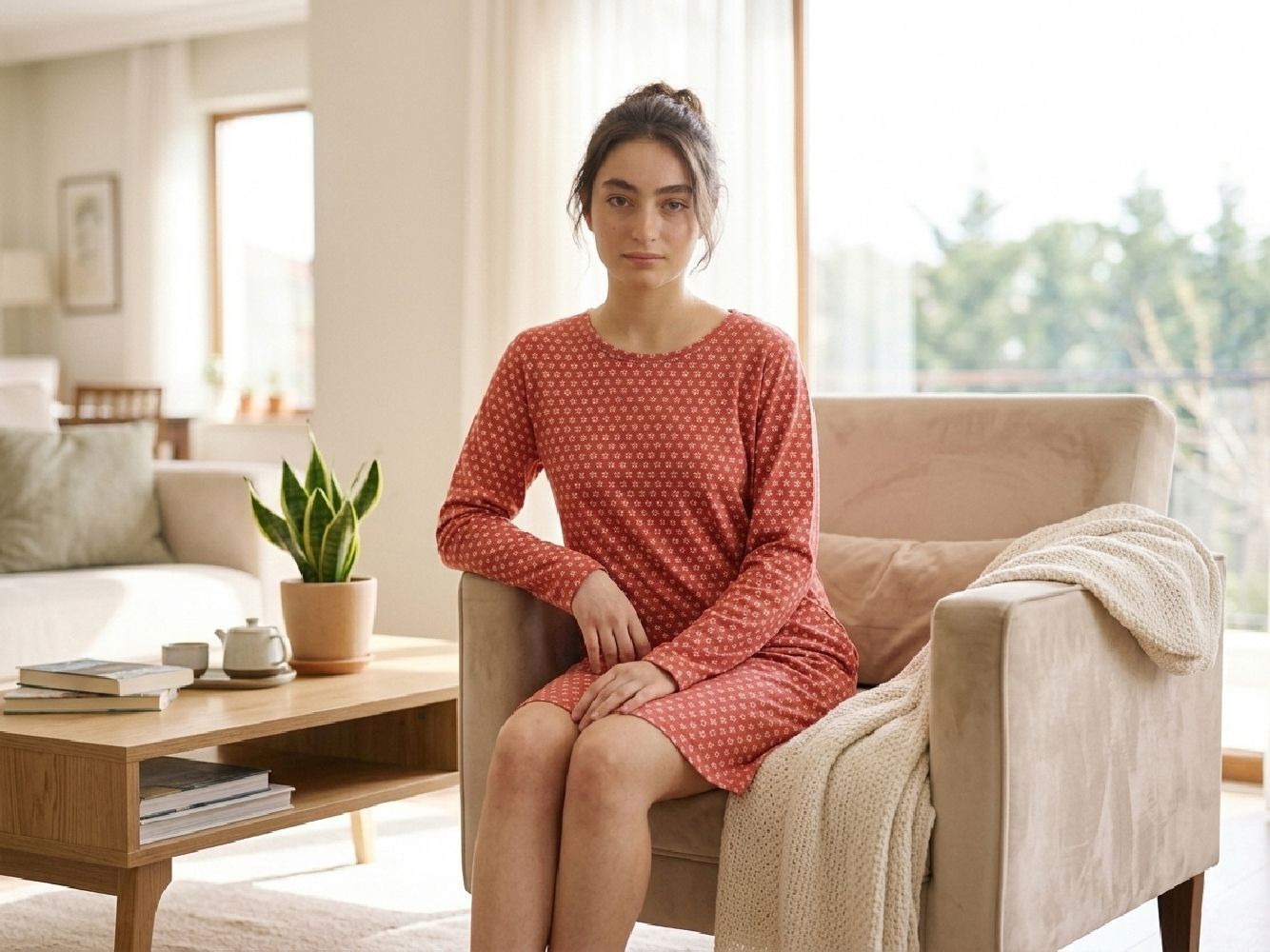 MODEL: UM250122K_R015 U&ME baykuş desenli pamuk kadın gecelik ile evde konforu keşfedin Uzun kollu, çift cepli, diz üstü rahat kesim yapısı ve %50 pamuk %50 modal yumuşak kumaşıyla günlük kullanım ve uyku için ideal U&ME Owl Baykuş Desenli Uzun Kollu Kadın Gecelik, konforu ve sevimli tasarımı bir araya getiren modern bir kadın ev giyim ürünüdür. Günlük kullanım için tasarlanan bu rahat gecelik, yumuşak kumaşı ve bol kesimi sayesinde gün boyu ve gece boyunca konforlu bir kullanım sunar. Ön kısmında bulunan çift cep detayı hem şık hem de fonksiyonel bir kullanım sağlarken, uzun ve manşetli kol tasarımı modele zarif bir görünüm kazandırır. Diz üstü boyu ve rahat kalıbı sayesinde hareket özgürlüğü sunan bu model, ev içinde rahatlıkla kullanılabilecek ideal bir gecelik alternatifidir. %50 pamuk ve %50 modal karışımlı özel kumaşı sayesinde ince, nefes alabilen ve cilt dostu bir yapı sunar. Yumuşak dokusu ciltte ipeksi bir his bırakırken, hafif yapısı sıcak havalarda ferah bir kullanım sağlar. Sevimli baykuş desenli tasarımı, eğlenceli ve modern bir stil oluştururken, rahat kesimi sayesinde günlük ev giyimi ve uyku için ideal bir tercih haline gelir. Ürün görsellerinde yer alan aksesuarlar pakete dahil değildir. Kaplantis.com güvencesiyle sunulan U&ME baykuş desenli pamuk kadın gecelik, yumuşak kumaşı, rahat kalıbı ve şık tasarımı ile ev giyiminde konfor ve stil arayan kadınlar için ideal bir tercihtir.Ürün Özellikleri