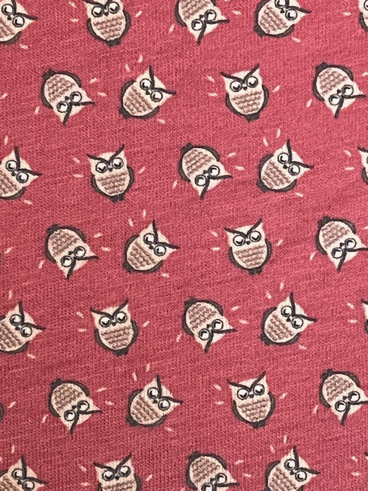 U&ME Owl Mini Baykuş Desenli Uzun Kollu Cepli Pamuk Kadın Gecelik, Rahat Ev Giyimi Kırmızı