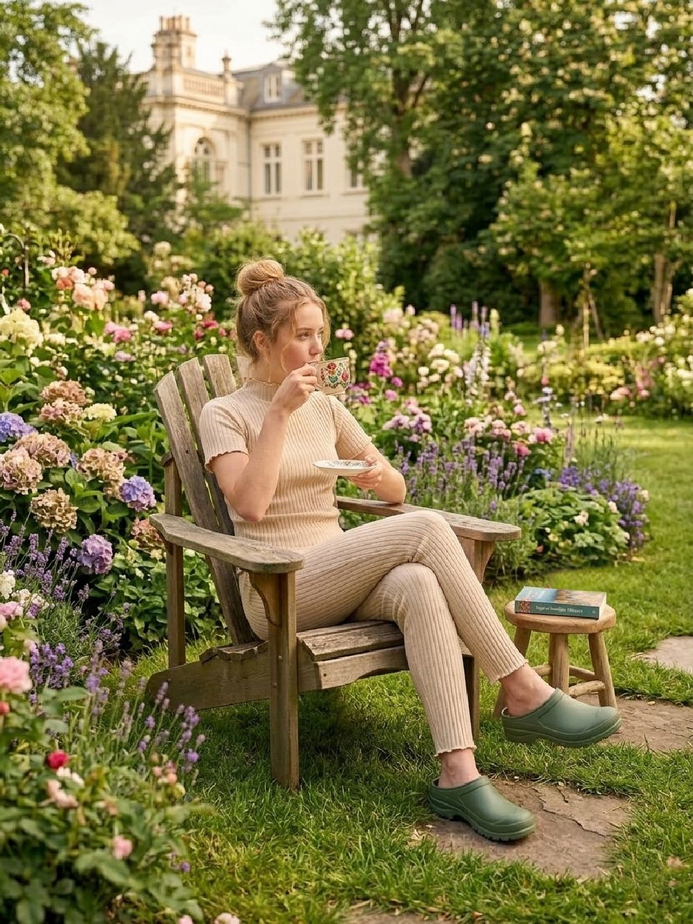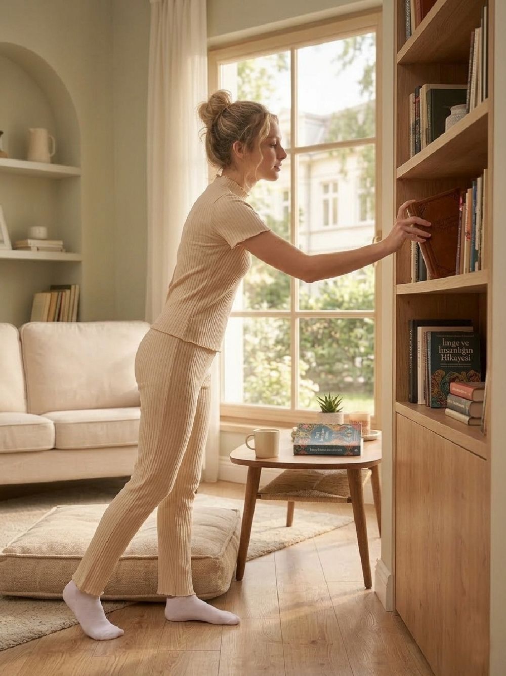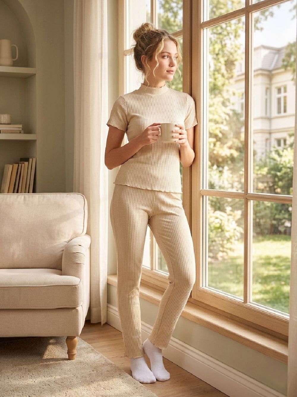 U&ME Ribbed Balıkçı Yaka Kısa Kollu Kadın Eşofman Takımı Ekru