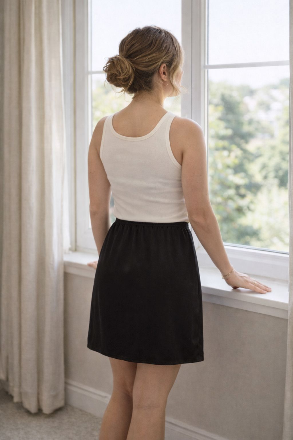 U&ME Tek Yırtmaç Diz Üstü Kadın Jupon Etek Altı Astar İçlik, Kaygan Kumaş Rahat Kısa Jupon Siyah