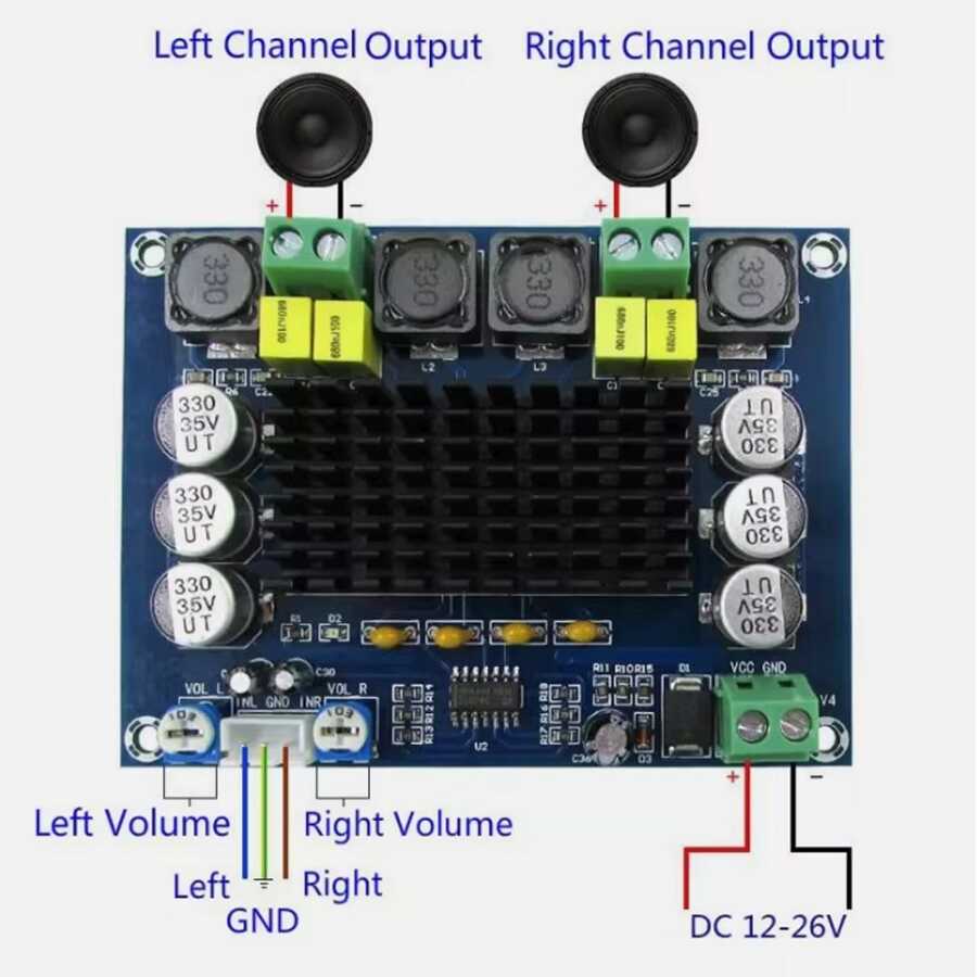 DC 12-26V girişi destekler ve yüksek kaliteli ses amplifikasyonunu sağlar