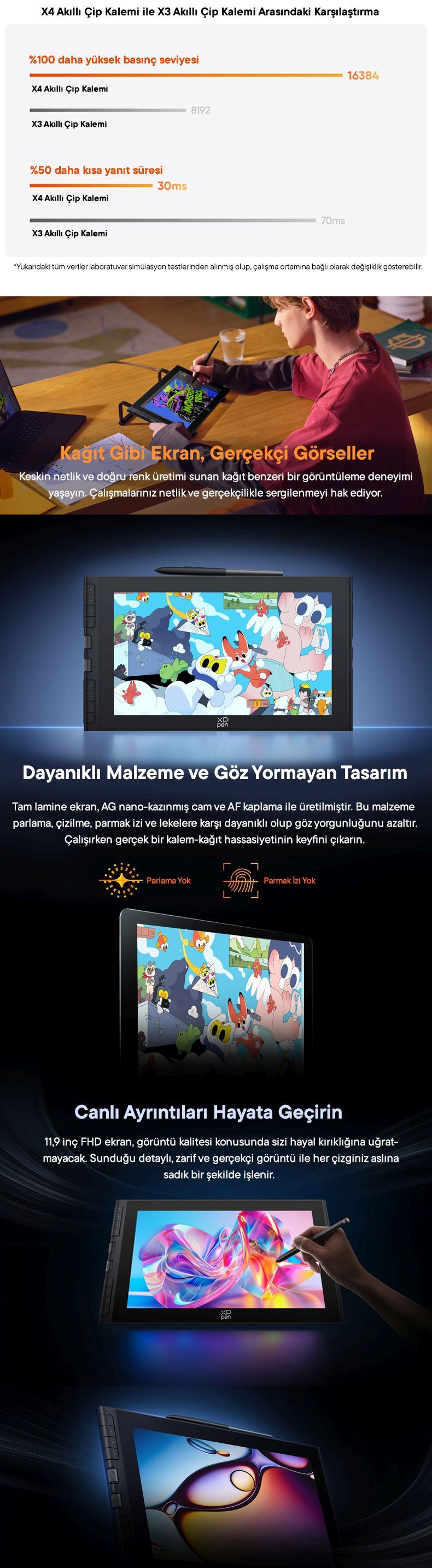 Tam laminasyon teknolojisi, kalem ucunun imleci neredeyse sıfır paralaksla yakından takip etmesini sağlar.