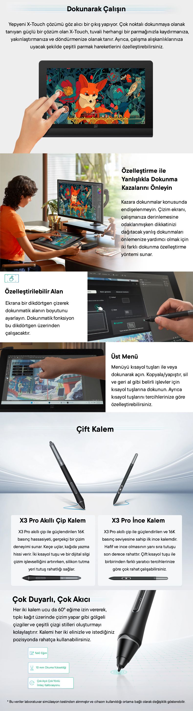 Kalem: 1 adet X3 Pro Akıllı Çipli Kalem, 1 adet X3 Pro İnce Kalem